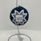The ornaments are made by pinning black white and blue fabrics onto a polystyrene form in a manner to create the chosen design.