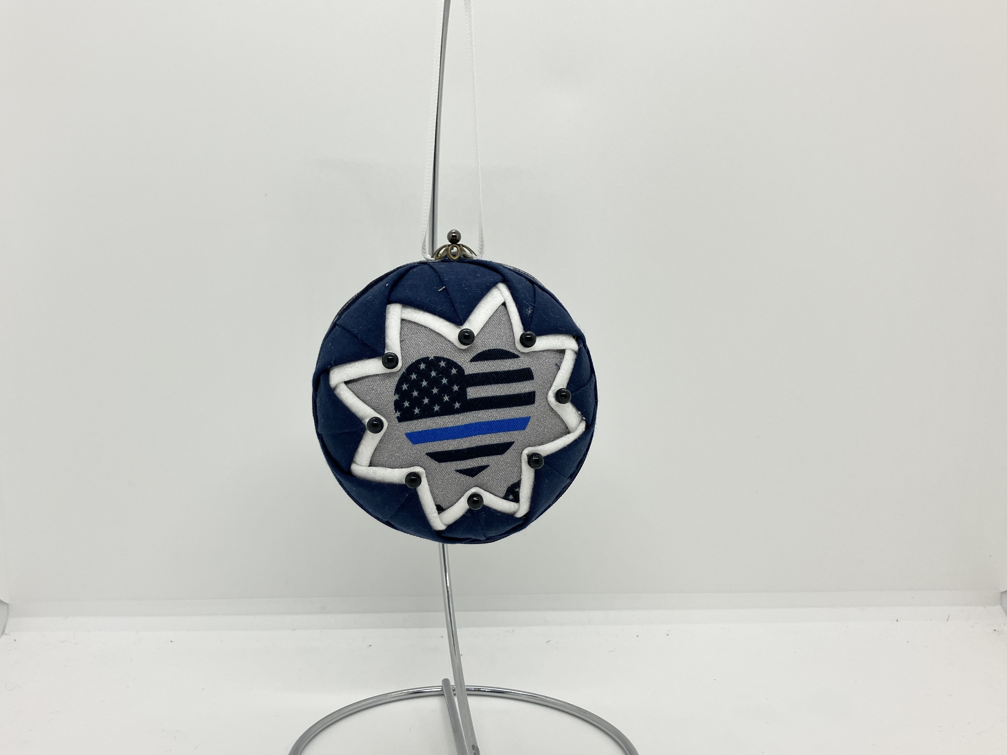 Back the Blue ornaments are made with high-quality repurposed fabrics and with great attention paid to details. Metal-head pins may use for embellishment
