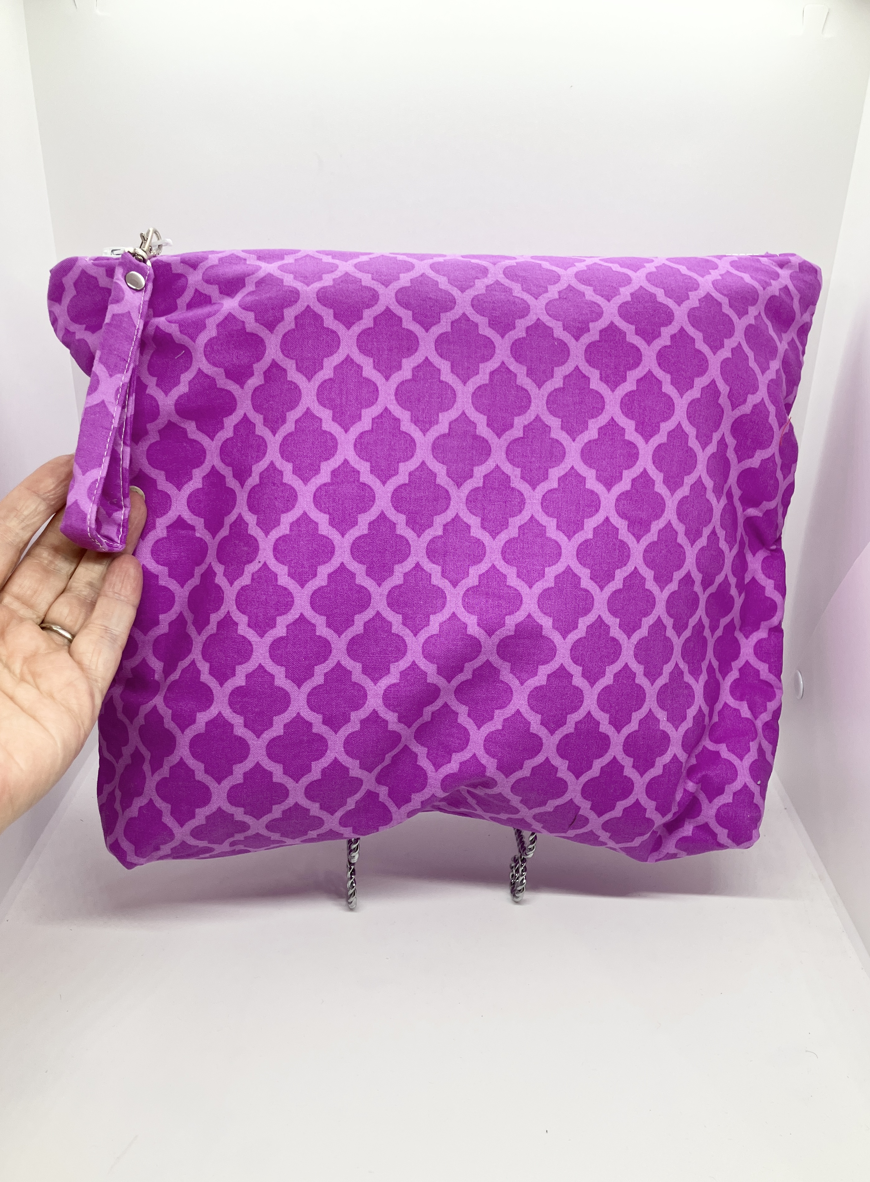 Crafters appreciate and use the project bags and accessory pouches for their knitting, crocheting, cross stitch and/or sewing. Other customers use the small bags for stashing essentials for running errands while others store markers, pencils, crayons or snacks. The larger bags are being used as knitting, crocheting, cross stitch project bags or as emergency baby clothes bag in the family car or organizing for a trip, etc.