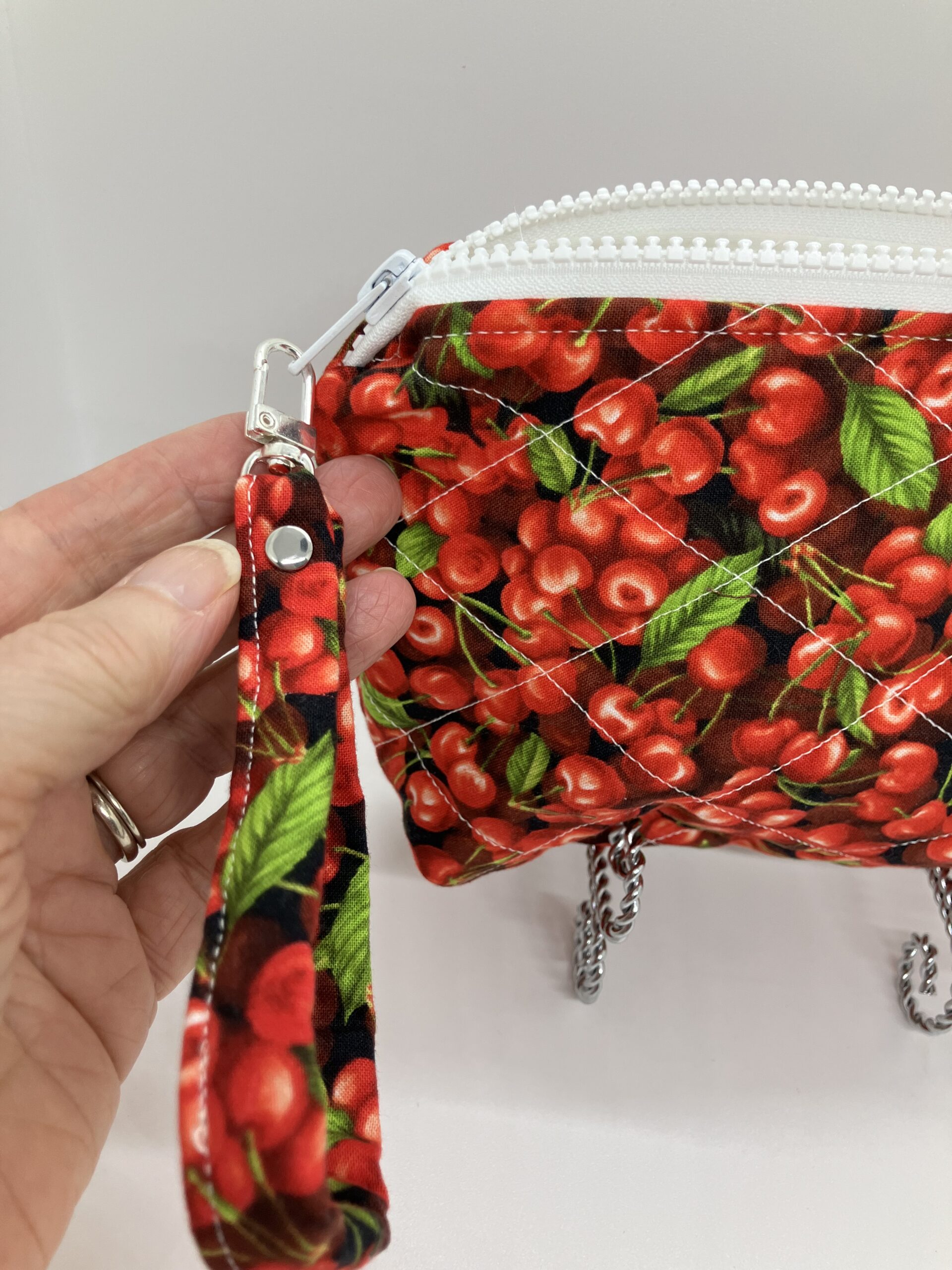 - Wristlet attached to zipper for easier accessibility